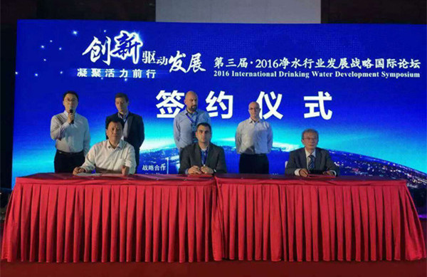 會上,美國水質協會與中國凈水行業專家網戰略合作中國凈水行業培訓項目正式簽約并落地安徽,美國水質協會、中國凈水行業專家網、安徽省凈水行業協會共同啟動了安徽凈水技術培訓項目。
