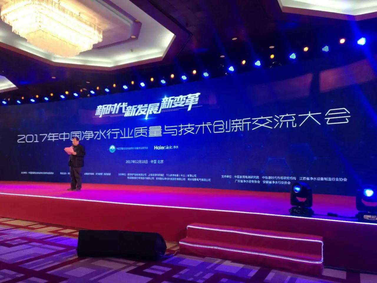 •        12月18日,2017年中國凈水行業發展年會暨質量與技術創新交流大會及2017全國兩凈行業金鼎獎頒獎盛典在北京喜來登長城飯店盛大舉行。本次大會由新浪家居、中國質量檢驗協會凈水設備專業委員會聯合主辦,得到國家工信部、中國家用電器研究院、中國質量認證中心、中怡康等機構大力支持。榮事達憑強勁實力與卓越品牌力量榮膺“2017年全國凈水行業影響力品牌”獎,榮事達水工業公司市場總監管仲受邀出席。