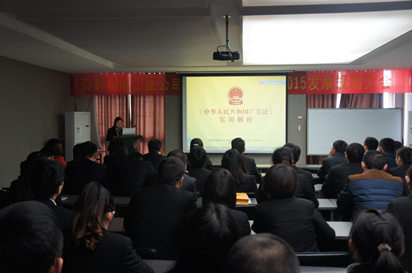會上,公司企劃總監劉海燕將廣告法條例與公司企宣工作案例相結合,用精心準備的PPT具體詳細地講解了新法實施后企業宣傳中需要整改和注意的要點。從極限詞的禁用到產品代言新規定;從產品外包裝規范到市場活動宣傳注意事項;從企業印刷物料整改到線上線下統一規范,劉總在會上明確要求各部門在實際工作中必須堅決貫徹“從嚴”的原則,認識上從嚴,執行上從嚴,監督上從嚴。
