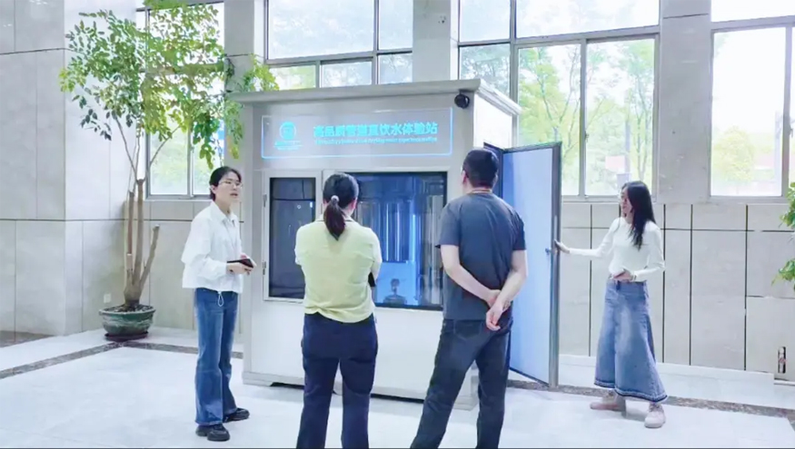 為了更直觀地感受項目的實際應用效果,客戶一行來到合肥樣板“工廠”,自榮事達社區智能凈水工廠入駐該小區以來,現制現飲的新鮮直飲水已融入居民日常生活,無論是泡茶、泡奶粉,還是煮飯煲湯,都離不開它,受到小區居民的廣泛好評。