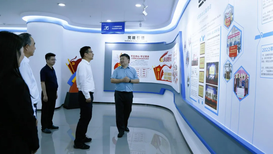 在智慧水世界展廳,董事長雷鳴向領導一行詳細介紹集團的發展歷程、公益貢獻及黨建引領下的企業文化等。