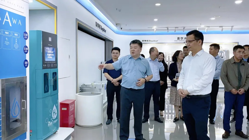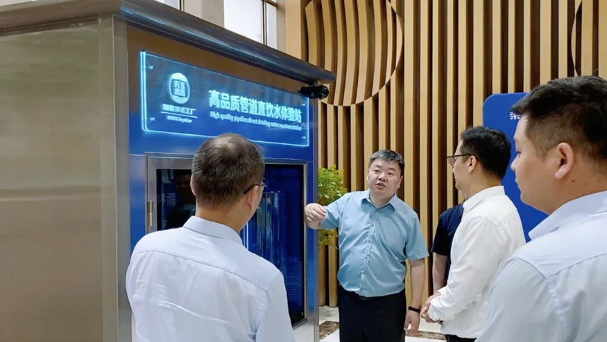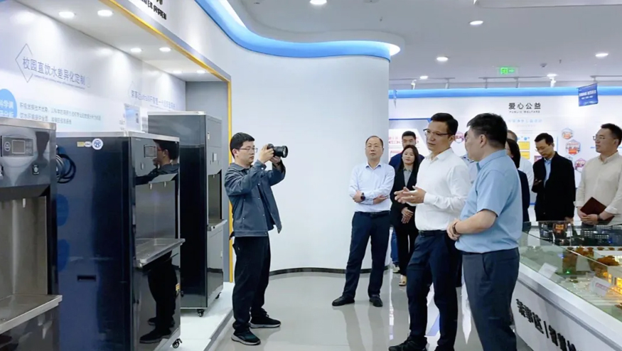 領導一行參觀了解集團的全屋智慧凈水項目、社區智慧飲水項目以及校園直飲水項目等。