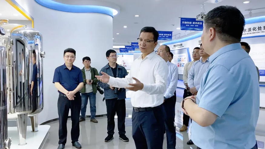5月8日,長豐縣縣委書記李孝鴻、縣領導宮小剛一行蒞臨榮事達水工業調研指導,集團董事長雷鳴、公司總經理王悅生、黨支部書記肖曉曉熱情接待。
