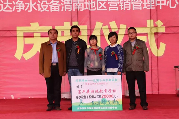 2015年伊始,榮事達水工業(yè)公司與安徽省青年志愿者協(xié)會共同發(fā)起了“樂享凈水——讓快樂與生命同在”助殘公益項目,活動一經(jīng)發(fā)起就受到了各地代理商的積極響應(yīng),截止目前,累計向康復(fù)中心、特殊學(xué)校、助殘機構(gòu)等350多個單位捐贈凈水設(shè)備2000多套,受惠人口超過50000人。除此之外,代理商們還主動為社會其他人群提供幫助,遼寧遼陽代理商就為當?shù)丨h(huán)衛(wèi)工人設(shè)置榮事達飲水站,解決其工作期間的飲水問題;江蘇大豐舉行了“關(guān)愛生命,凈享水源”百村助民活動,當?shù)卮砩桃罁?jù)實際情況為各村鎮(zhèn)服務(wù)機構(gòu)安裝凈水機,方便村民接水飲用。