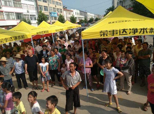 在天津、山西省份的鄉鎮市場,代理商通過舉辦精彩的文藝演出來獲得當地居民關注,歡快的舞蹈、幽默的小品豐富了廣大居民的日常生活,吸引了大批居民駐足觀看。人氣爆棚的活動現場、持續高漲的關注度、輕松愉快的氛圍為凈水推廣活動提供了良好的環境。