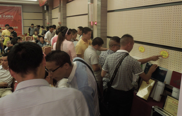 襄陽營銷管理中心自成立以來,已成功開發(fā)加盟商60多家,將榮事達(dá)做成了當(dāng)?shù)貎羲a(chǎn)品第一品牌。榮事達(dá)凈水機(jī)憑借卓越的產(chǎn)品質(zhì)量和服務(wù)在襄陽擁有極高的品牌知名度,終端渠道網(wǎng)點(diǎn)遍布襄陽地區(qū)各縣城、鄉(xiāng)鎮(zhèn),產(chǎn)品銷量在當(dāng)?shù)馗鞘浊恢?。襄陽凈水市場蓬勃發(fā)展的盛況使得此次分銷會(huì)議除了有120多位當(dāng)?shù)亟?jīng)銷商和意向客戶前來參加,還吸引了江西、貴州、河南、陜西等外省客戶慕名趕來觀摩、學(xué)習(xí)。