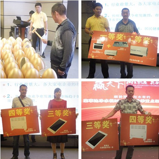 分銷會(huì)上,現(xiàn)場訂貨政策解讀贏得廣大客戶一片叫好,訂貨客戶砸金蛋贏燃具套餐、電熱水器、智能手機(jī)大獎(jiǎng)更是將會(huì)議氣氛推向高潮。現(xiàn)場,新客戶合作意向強(qiáng)烈,洽談區(qū)忙得熱火朝天;老客戶現(xiàn)場訂貨訂單接連不斷,抽得大獎(jiǎng)更是喜笑顏開。此次深度分銷會(huì)議,榮事達(dá)新增30多位凈水機(jī)經(jīng)銷商,壯大了終端渠道營銷實(shí)力,更是給全國代理商異地溝通、學(xué)習(xí)提供了有益示范。