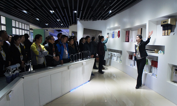 解說員還提到企業(yè)自主研發(fā)的雙膜專利技術(shù),一機實現(xiàn)凈、飲雙效,并現(xiàn)場為我們演示使用,“污水經(jīng)凈化由雙龍頭流出,一個日用一個飲用,飲用水可以直接喝!” 說著解說員便端起剛凈化的飲用水直接喝下,前一秒的污水,后一刻就能直接飲用,引得我們眾多參觀者驚嘆、鼓掌。當(dāng)天,解說員還向我們普及了RO反滲透膜、五級凈化系統(tǒng)等諸多凈水知識,尤為專業(yè)的行業(yè)分析與產(chǎn)品解讀,解答了我們許多問題,豐富了我們的認(rèn)知。