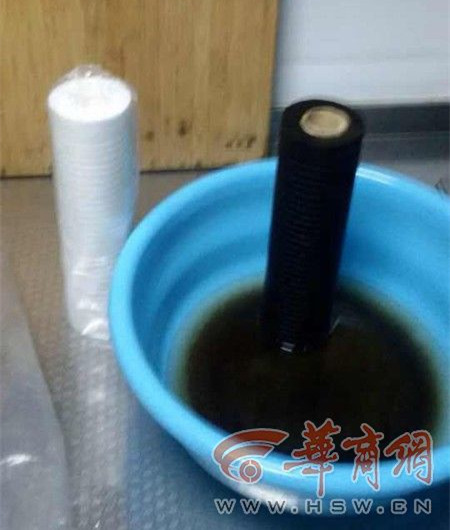 該小區多家住戶使用的是同一品牌的凈水器,該凈水器廠家一負責人解釋,凈水器都有前置濾芯和后置濾芯,一般都是建議6個月更換一次前置濾芯。“正常更換下來的顏色應該是微微發黃或鐵銹紅。”該負責人說,但小楊家的前置濾芯更換下來卻是黑巧克力色,而且摸上去是油泥狀的物質。